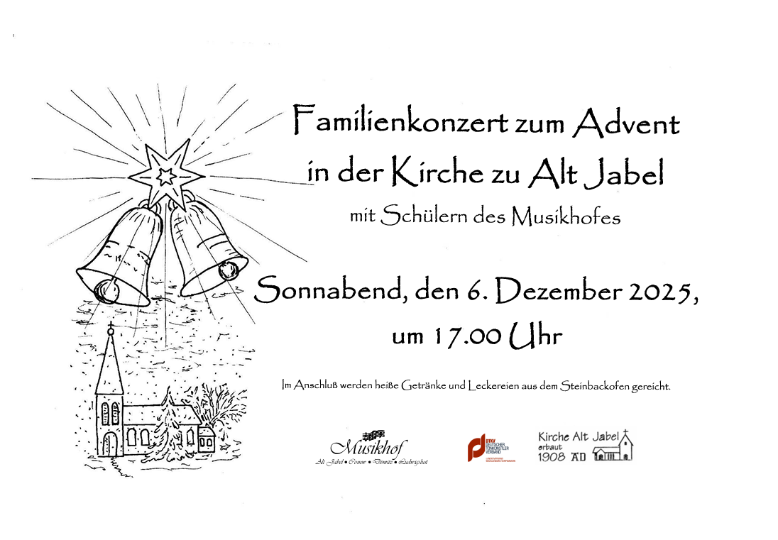 Was gibt es Schöneres, als am Nikolaustag ein Familienkonzert zu besuchen? Beginn ist am 6. Dezember um 17 Uhr in der Alt Jabler Kirche. Kleine und große Solisten sowie der Chor sind bereits fleißig am üben. So darf sich unser Publikum wieder auf ein abwechslungsreiches und liebevoll gestaltetes Programm freuen und natürlich auch selber mitsingen. Nach dem Konzert laden die Kirchengemeinde, die Feuerwehr Alt Jabel und der Museumsbeirat zum gemütlichen Beisammensein bei Glühwein, Bratäpfeln, Bratwurst, heißen Waffeln und Lagerfeuer ein.