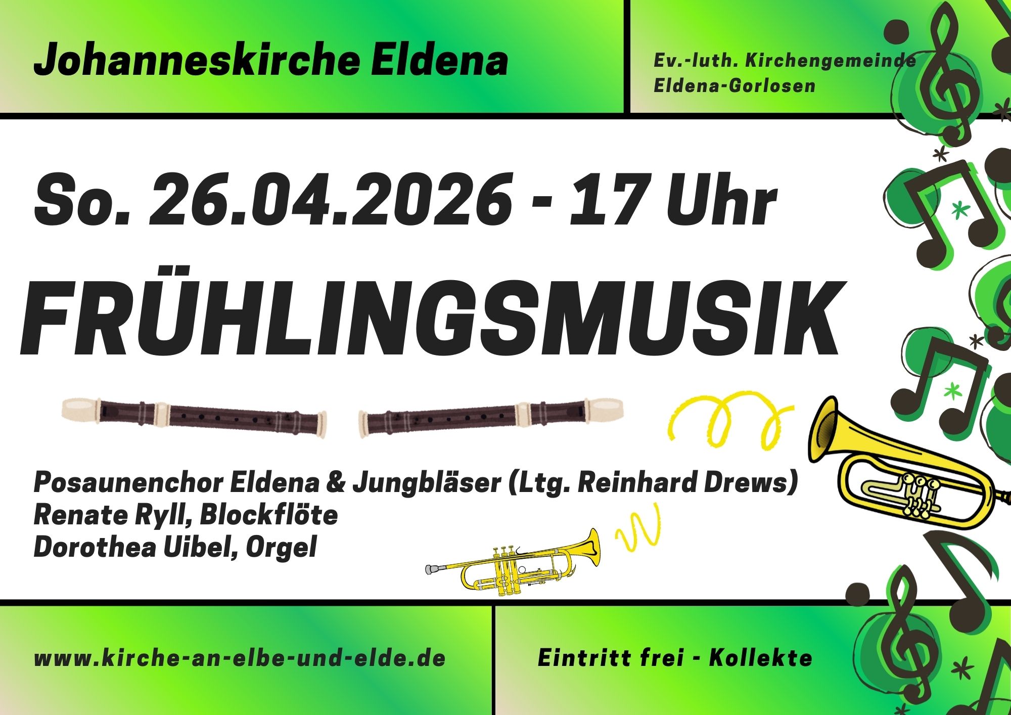 Posaunenchor Eldena & Jungbläser (Ltg. Reinhard Drews) Renate Ryll, Blockflöte Dorothea Uibel, Orgel