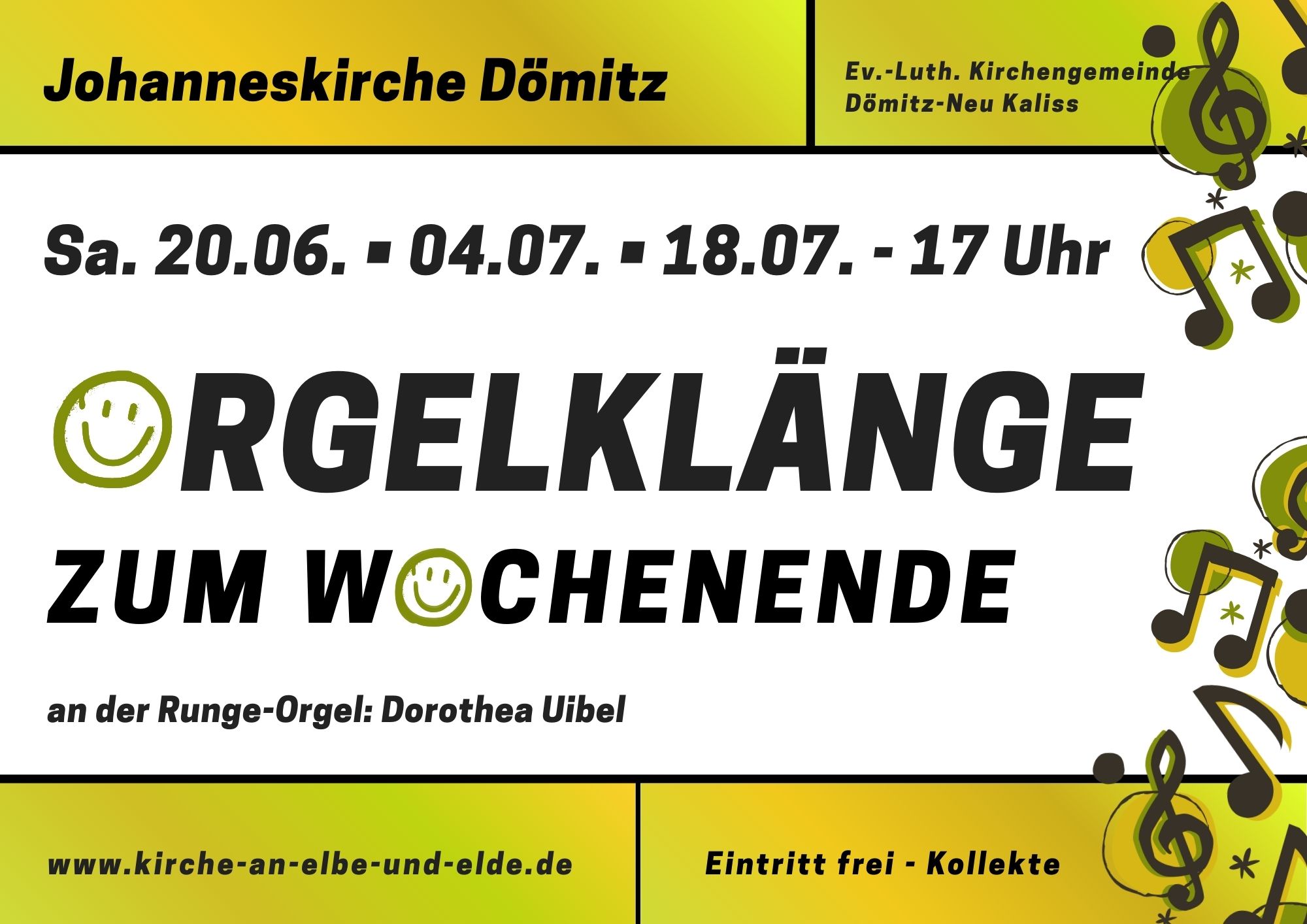 Kirchenchor an Elbe und Elde (Ltg. Dorothea Uibel) Kirchenchor Lenzen (Ltg. Hans-Joachim Makel) Dorothea Uibel (Orgel) Eintritt frei - Kollekte erbeten